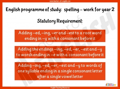 Year 2 English programme of study - Spelling - work for year 2: