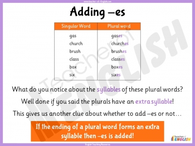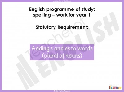 To preview 'Adding s and es to Make Plural Words - Year 1' in full please click on the images opposite.