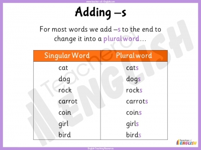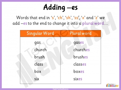 Adding s and es to Make Plural Words - Year 1 - teaching resource