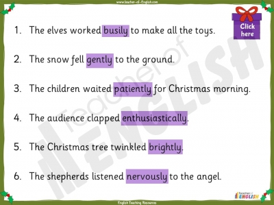 Click the images opposite to take a closer look at Christmas Adverbs - KS1.