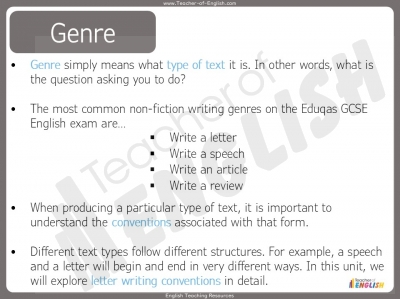 Ideal for whole-class teaching, revision or intervention, this Eduqas GCSE English Language resource helps students build confidence in letter writing while improving communication, organisation and technical accuracy.