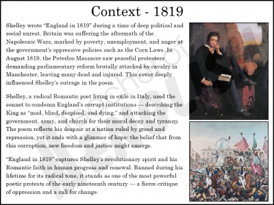 - Detailed contextual study of Shelley, Romanticism and early 19th-century English social unrest