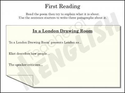 - Comparison activities linking 'In a London Drawing Room' with Shelley’s 'England in 1819'.
