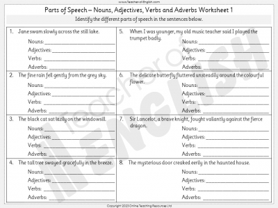Grammar Teaching Resource – Nouns, Adjectives, Verbs and Adverbs