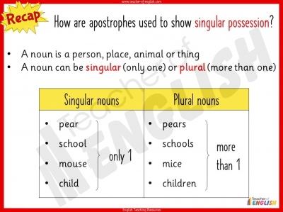 Possessive Apostrophes - Years 3 and 4 - teaching resource