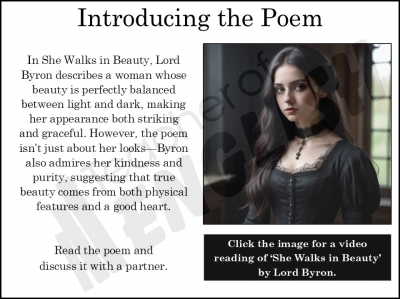 She Walks in Beauty by Lord Byron – Edexcel GCSE Relationships Poetry Teaching Resource