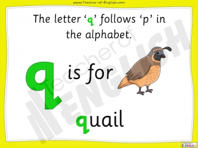 In this EYFS teaching resource children are introduced to the letter 'q'.