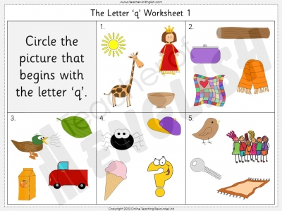 - A letter 'q' activity with an accompanying worksheet