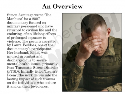 This two-lesson mini-unit provides a detailed study of Simon Armitage’s ‘The Manhunt’, a key poem from both the WJEC/Eduqas Conflict Poetry Anthology and the Edexcel Relationships Poetry Anthology. Ideal for classroom teaching, revision, and exam preparation, this comprehensive resource supports students in developing close reading, analytical, and comparative essay-writing skills.