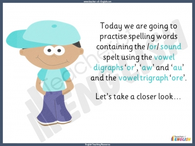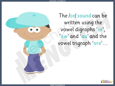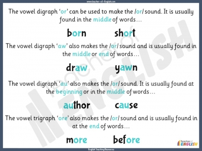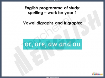 - vowel digraphs and trigraphs - or, ore, aw and au